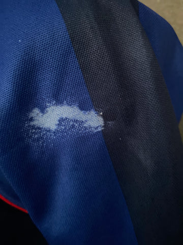 Sunderland 2001/02 away shirt. Blue and navy stripes, manufactured by Nike, sponsored by reg vardy.