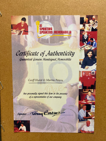 Signed by the 2 goals scorers to see England win the only time in there Hiatory the World Cup 1966, Sir Geoff Hurst and Martin peters.